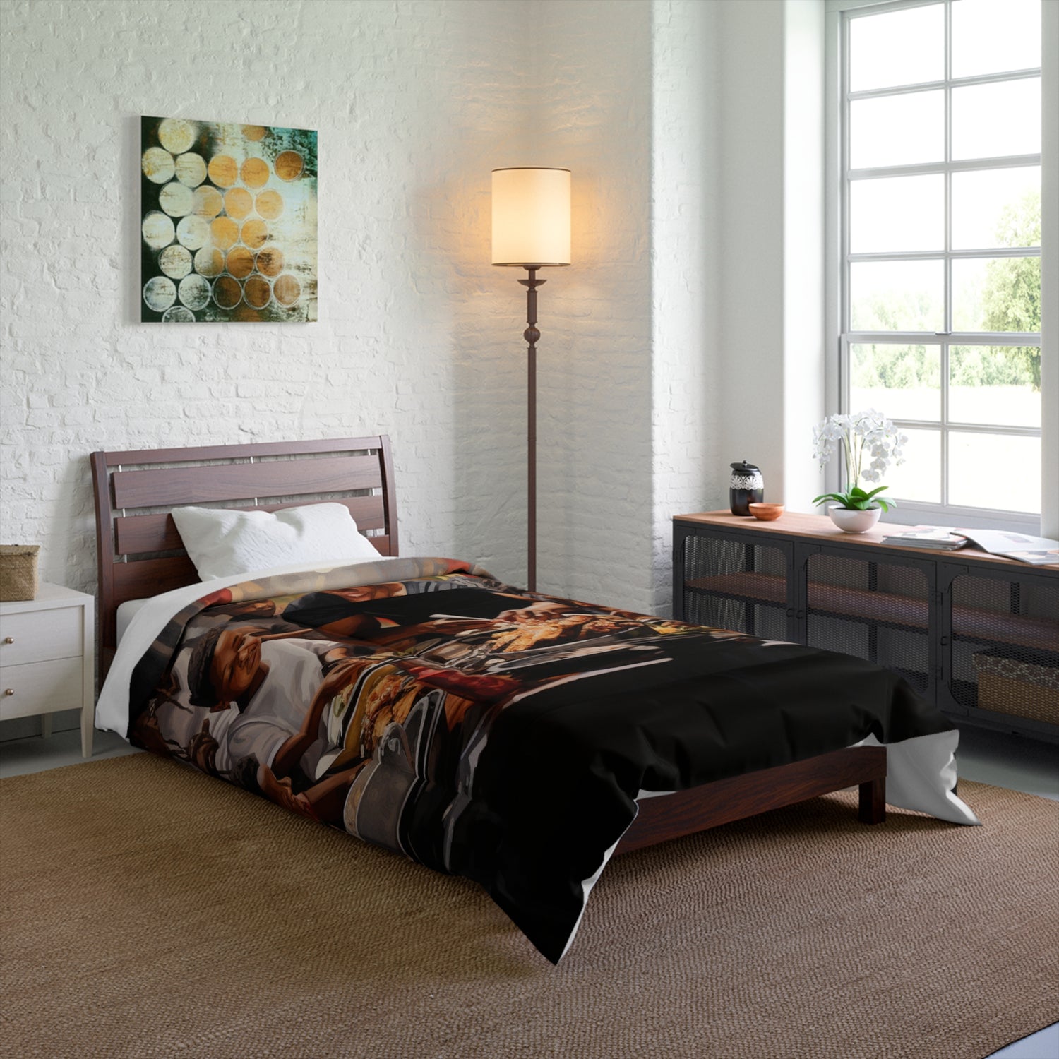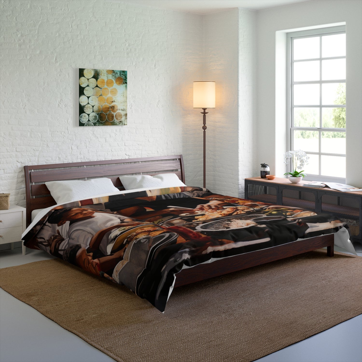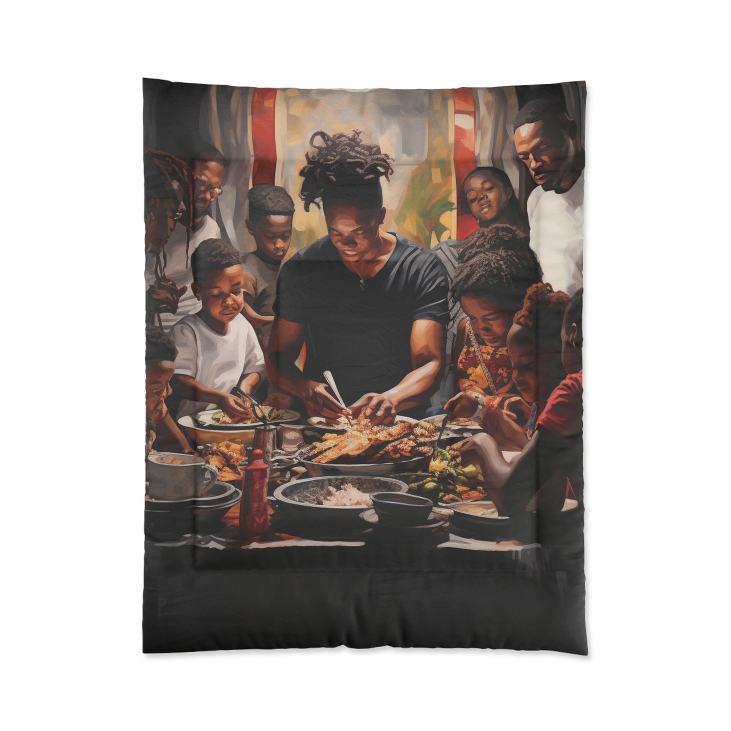 This ultra realistic abstract oil painting comforter will bring a sense of family unity and joy into your room. The bright colors of the black big family celebration in the painting are sure to uplift any atmosphere and bring positivity into your home. The food being served in the background hints at an abundance of love that is sure to give you a warm feeling when you cuddle up under this comforter. #FamilyLove #BigFamily #AbstractPainting #RealisticComforter #OilPainting #ComfyHome #BigCelebration #BlackFamily #AbstractArt #AbstractDesign #UnifiedFamily
