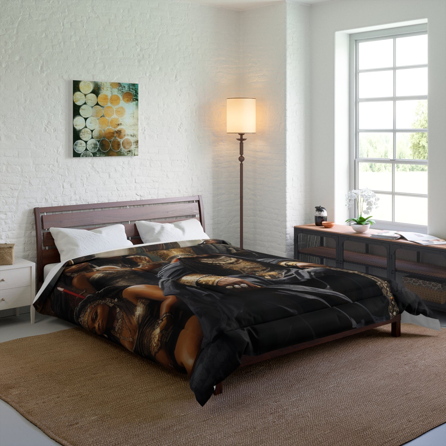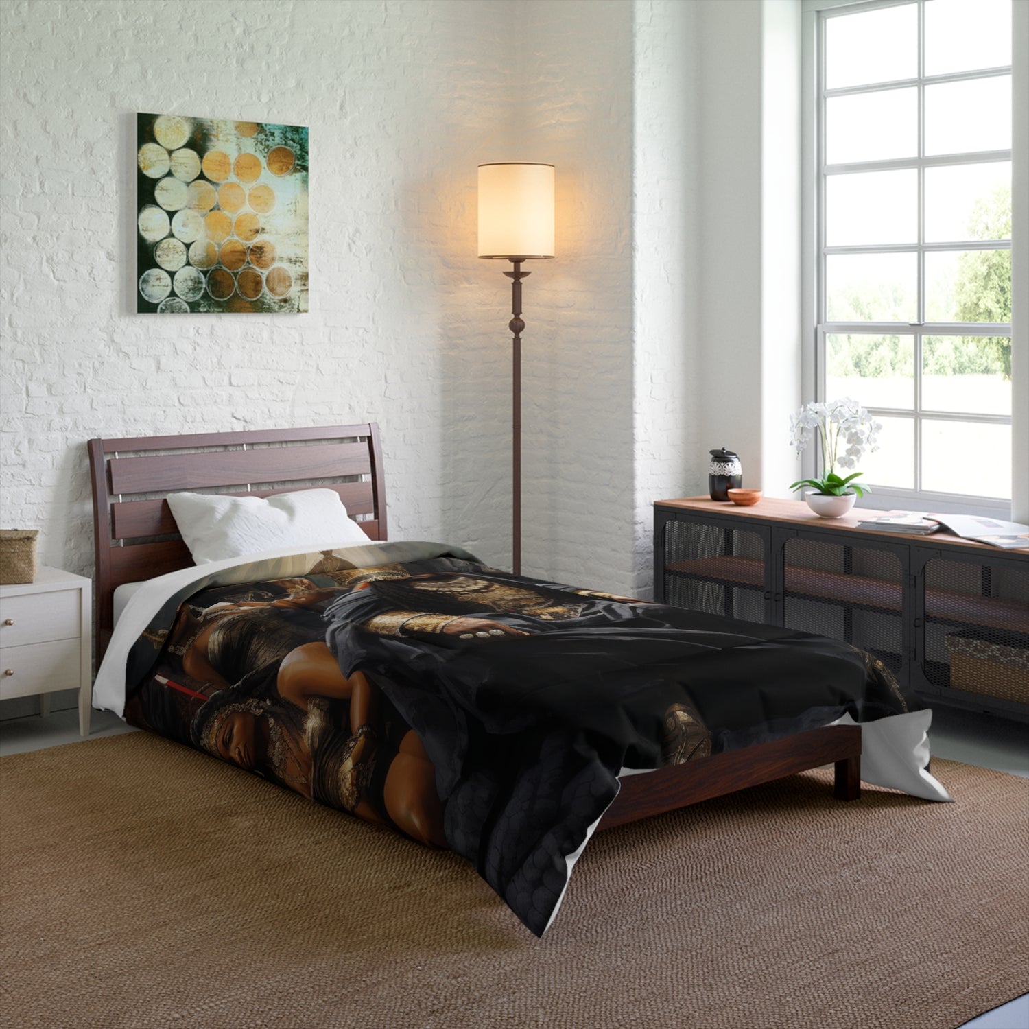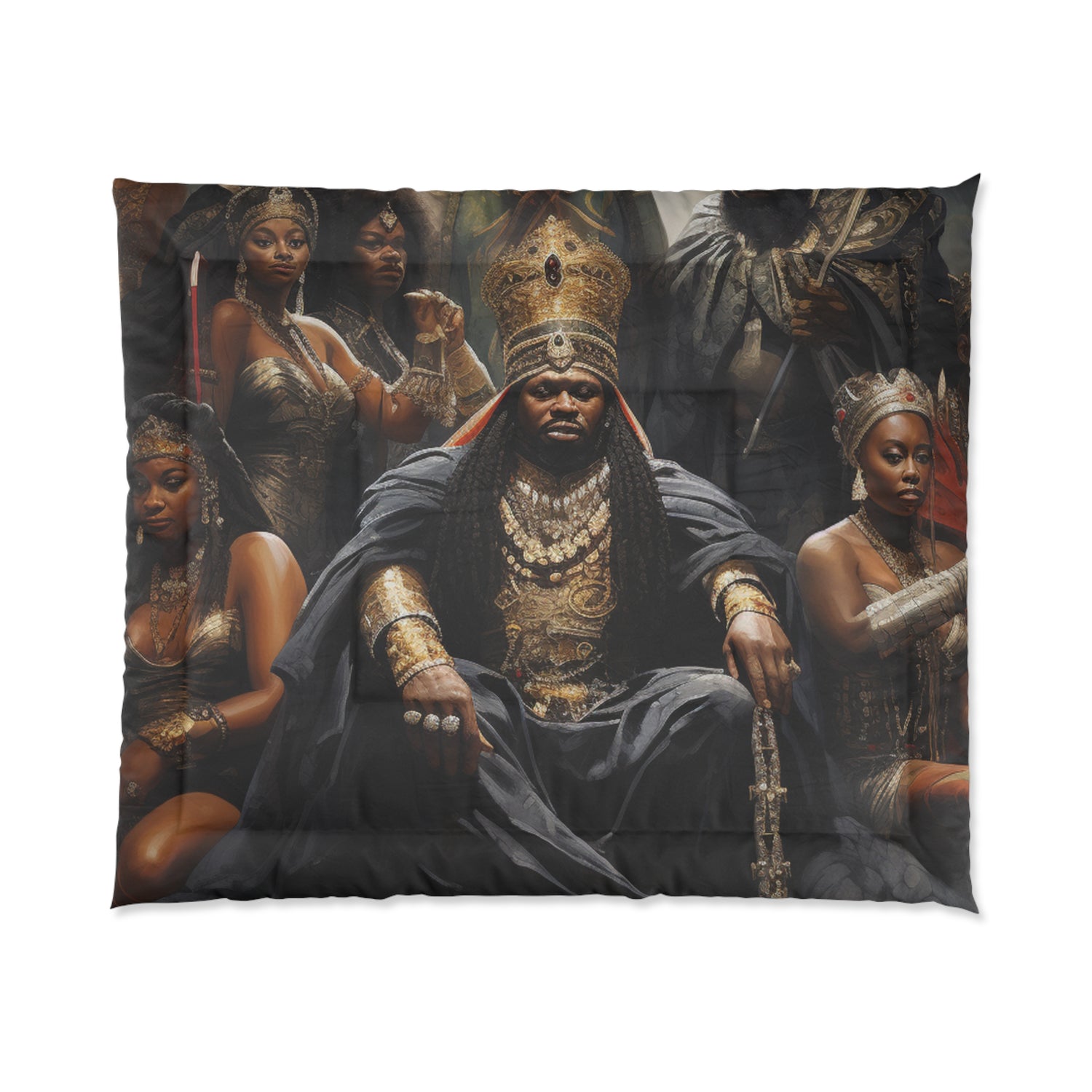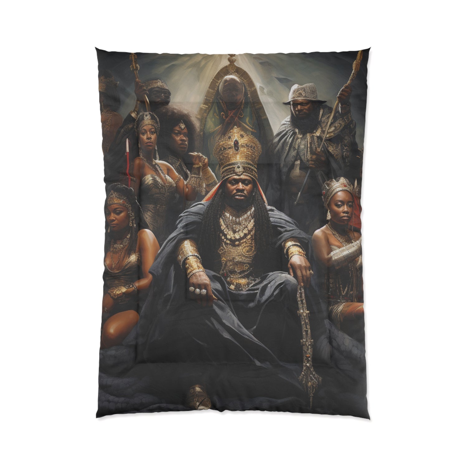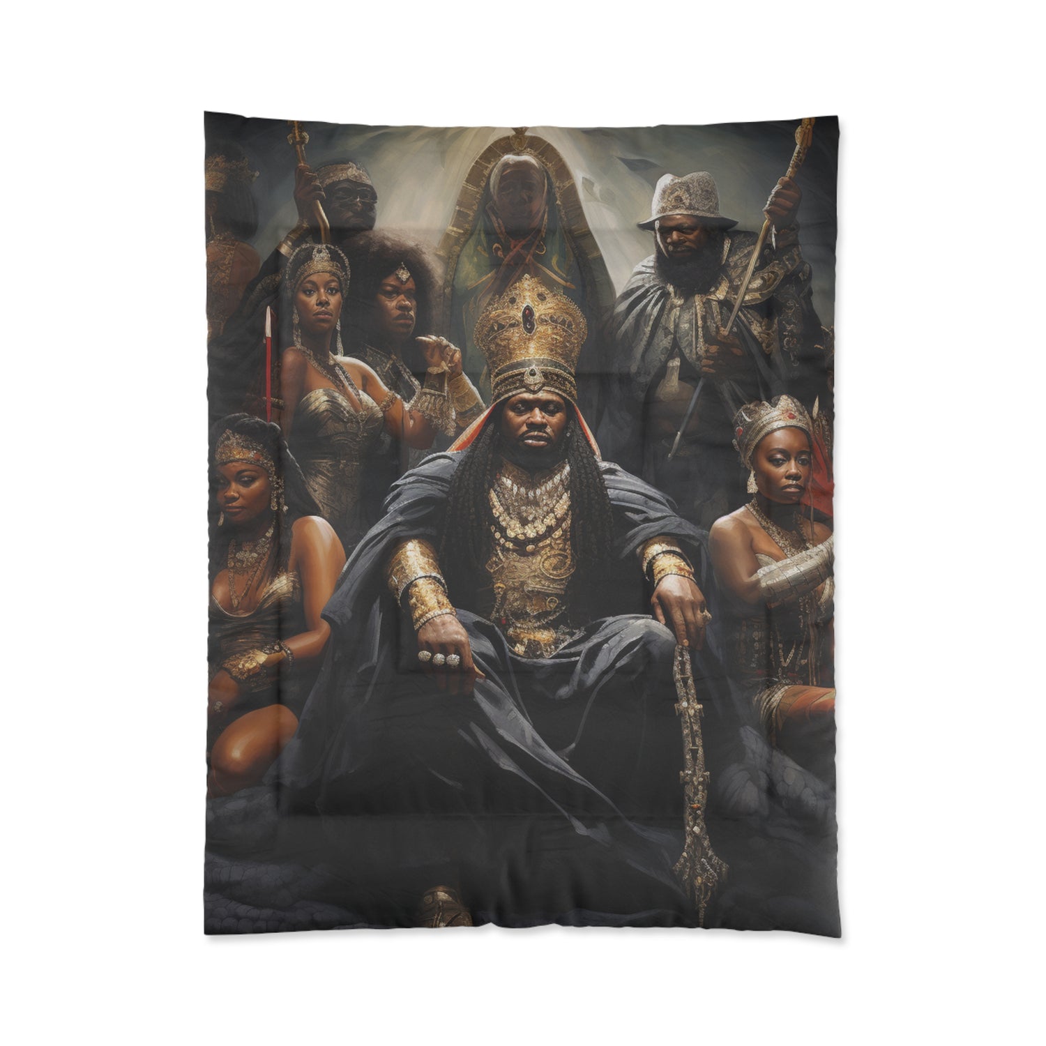 Surround yourself with opulence and luxury in your home with this breathtaking ultra realist oil painting of black kings and queens and their people. Each blissful subject bathed in beautiful vibrant colors, radiates strength and pride. Wrap yourself in the magnificence while you cozy up at night with this comfortable comforter that is sure to add a regal touch to your decor. #blackkingsandqueens #oilpainting #luxuryhome #abstractornament #blackpride #vibrantdecor #realisticart #empoweringmessage #decorforsuccess #regalstyle #luxuryliving