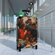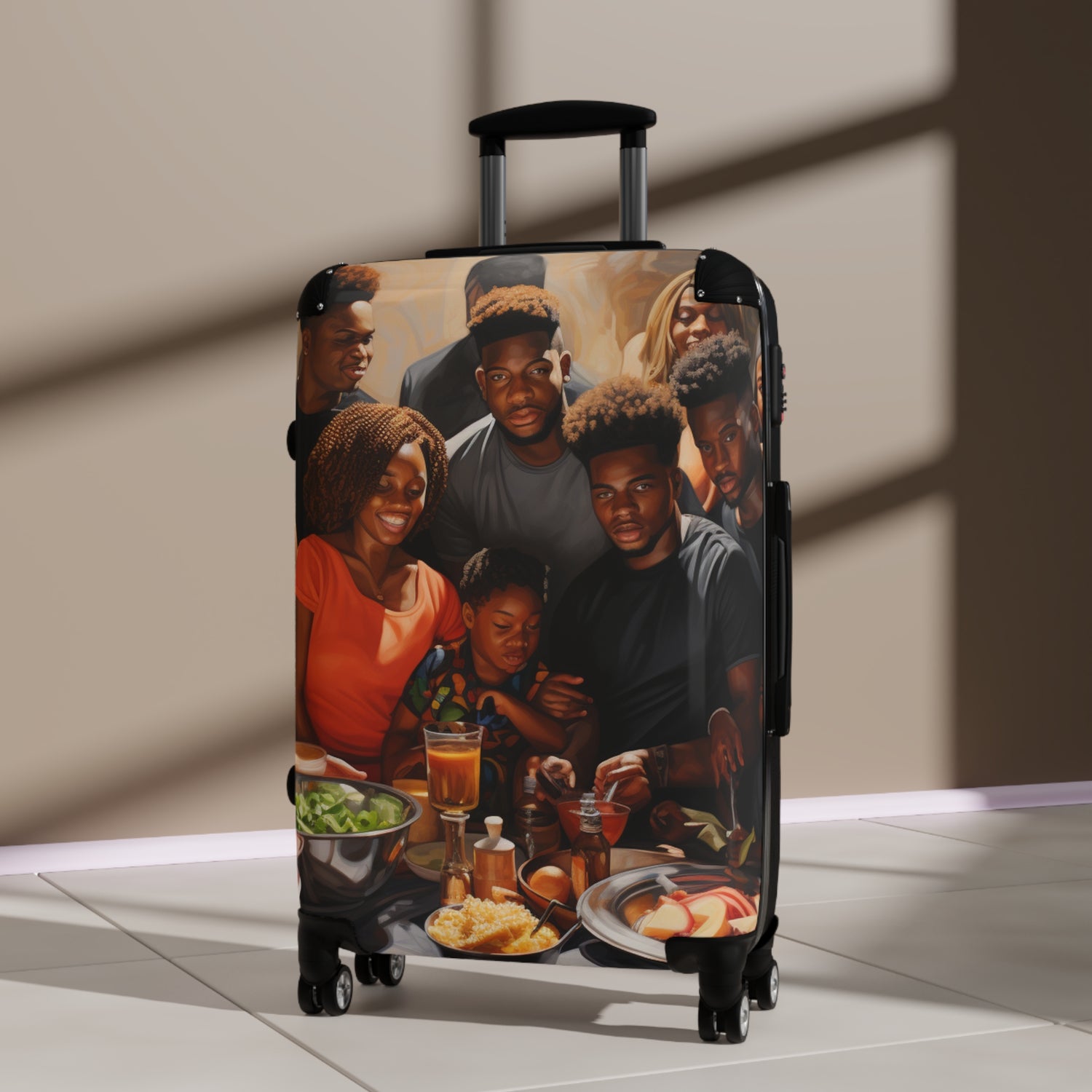 This bold, eye-catching oil painting features a large black family gathering and the sumptuous feast they are celebrating. It captures the warmth and joy of such an event in stunning, precise detail. Whether adding an interesting piece of art to your home, or a whimsical piece to your office, this ultra realistic abstract oil painting on canvas is sure to draw attention. #oilpainting #blackfamily #abstractart #celebration #suitecase #bigfamily #familygathering #familyfeast #realisticart #warmthandjoy #oilpaintingoncanvas