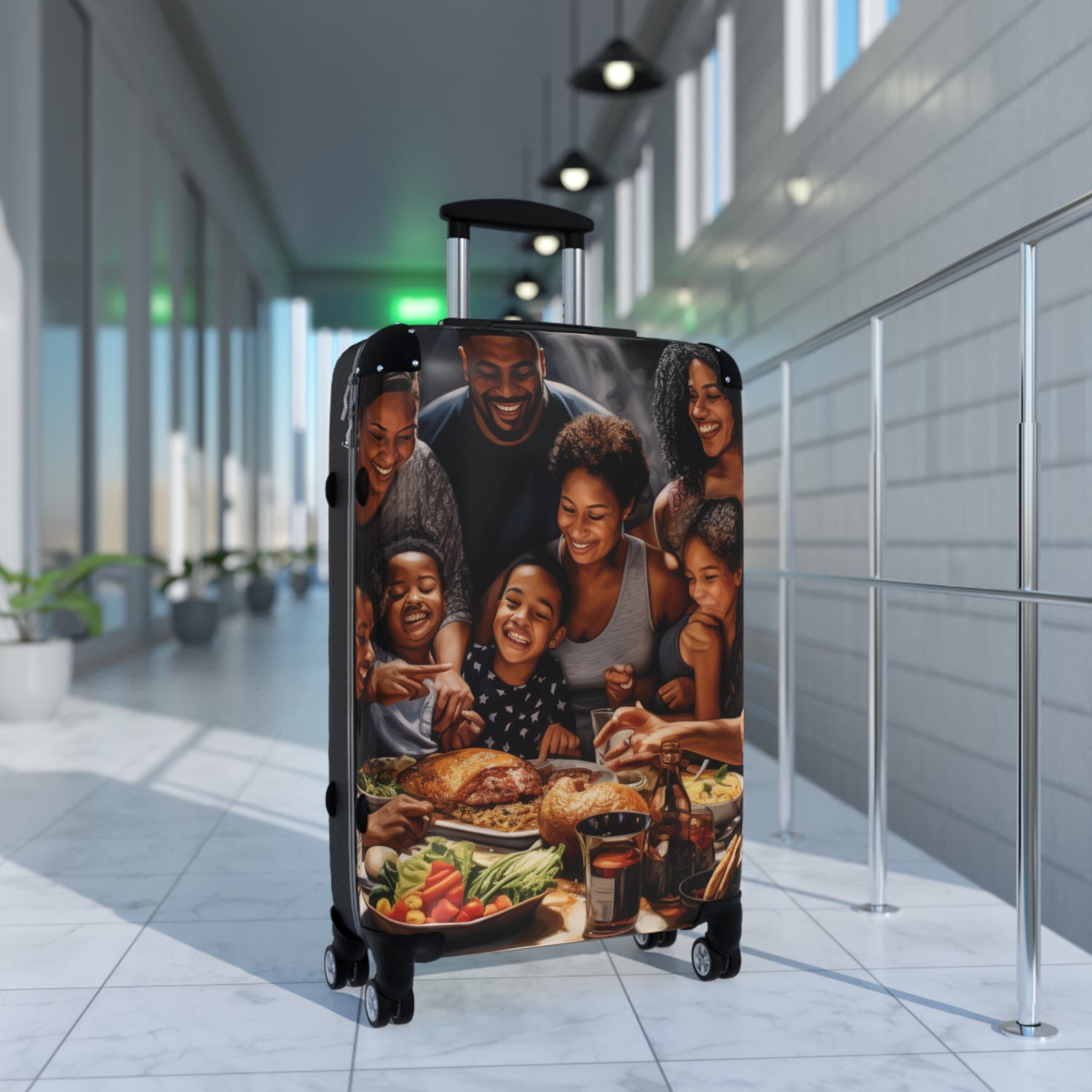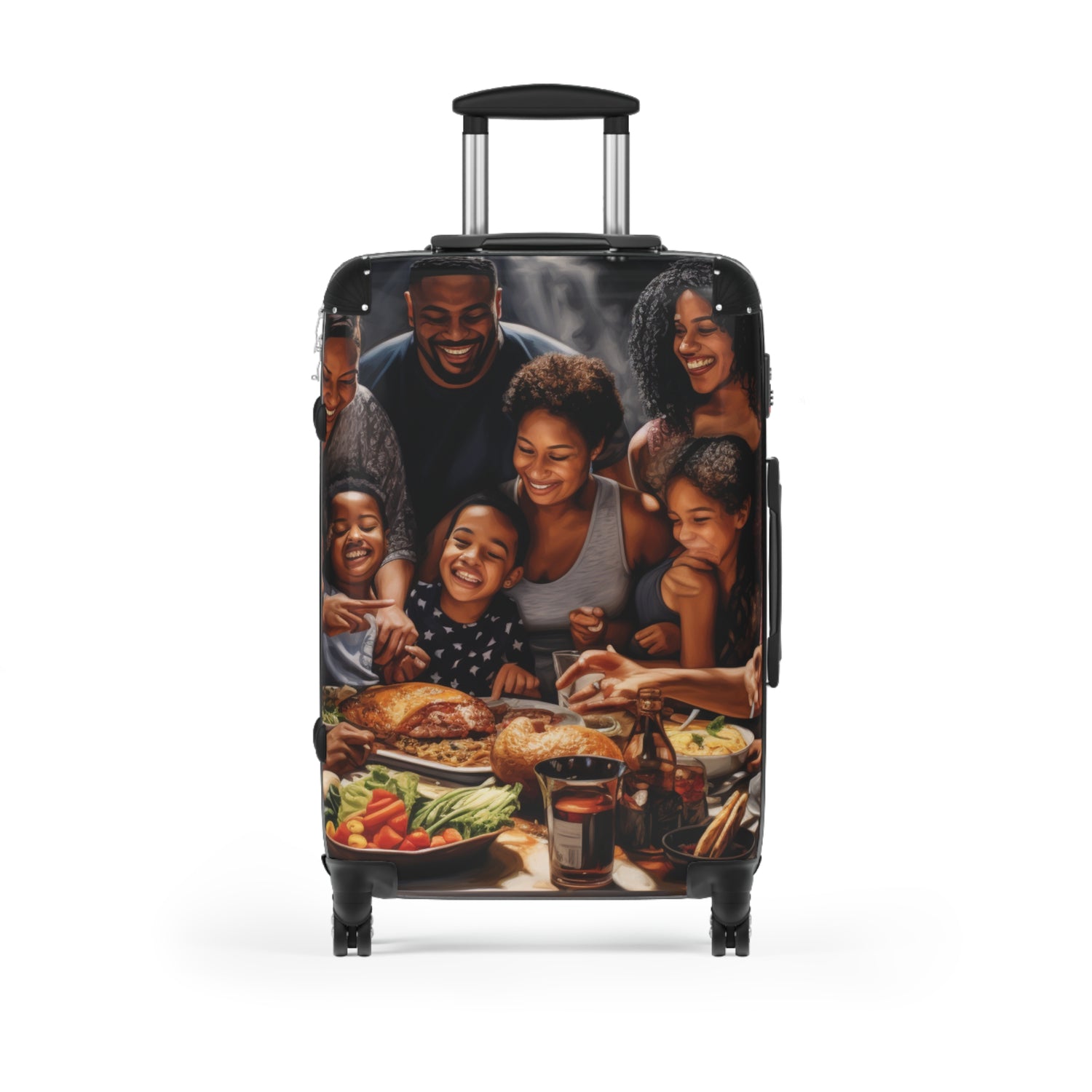 This ultra realistic abstract oil painting of a black big family celebration will bring life to your room. It paints a beautiful scene of celebration with food served in the background. The colors, details, and hues of this painting will captivate onlookers and bring joy to your home. The suitcase is easy to carry and close securely to keep your painting safe. #OilPainting #AbstractArt #Realism #FamilyCelebration #ColorfulPainting #LivelyScene #PackedSafely #FamilyTime #HappyHome #WallArt #WallDecor
