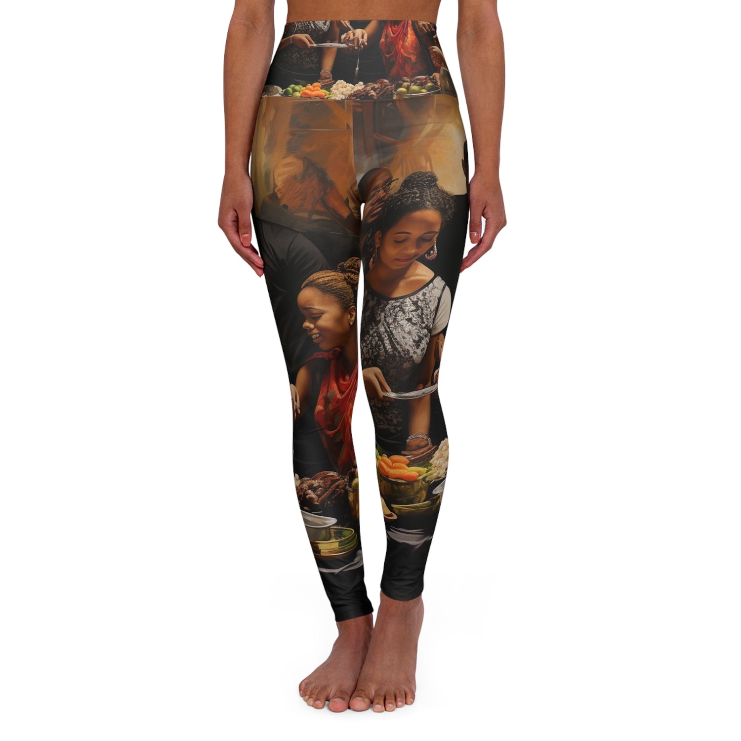 These are not your average leggings! Our leggings feature an ultra realistic abstract oil painting of a black big family celebration with food being served in the background. Soft and lightweight, these leggings feature a buttery-soft matte fabric to keep you comfortable and stylish. #HappyFamily #FamilyCelebration #BlackFamily #AbstractPaintings #RealisticOilPainting #BlackFashion #LeggingsStyle #OilPaintingStyle #FamilyLove #MatteFabric #ButterySoft