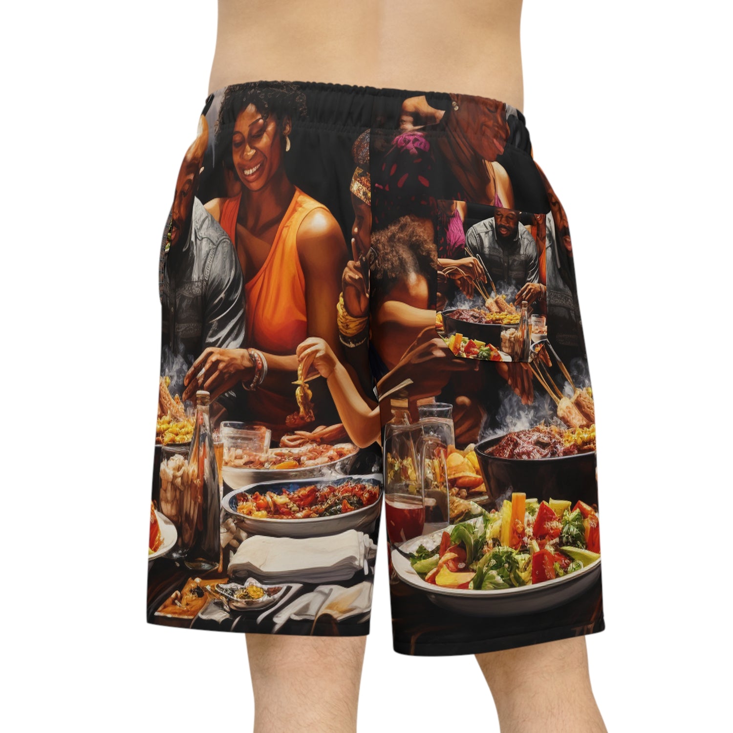 The perfect way to make a statement this summer! Our Ultra Realistic Abstract Oil Painting Shorts feature an oil painting of a black big family celebration with food being served in the background. These shorts are sure to make a statement and will become a conversation starter wherever you go. Be proud of where you come from and make something bold today! #blackfamily #ultrarealistic #abstractpainting #oilpainting #shorts #summer #vibrant #artistic #colourful #proud #statement